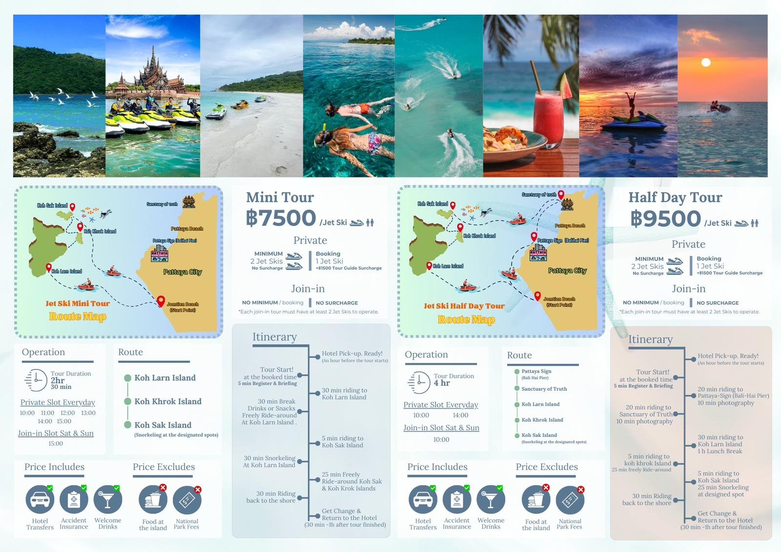 30 min riding to Koh Larn Island and 30 min break for drinks and snacks upon arrival